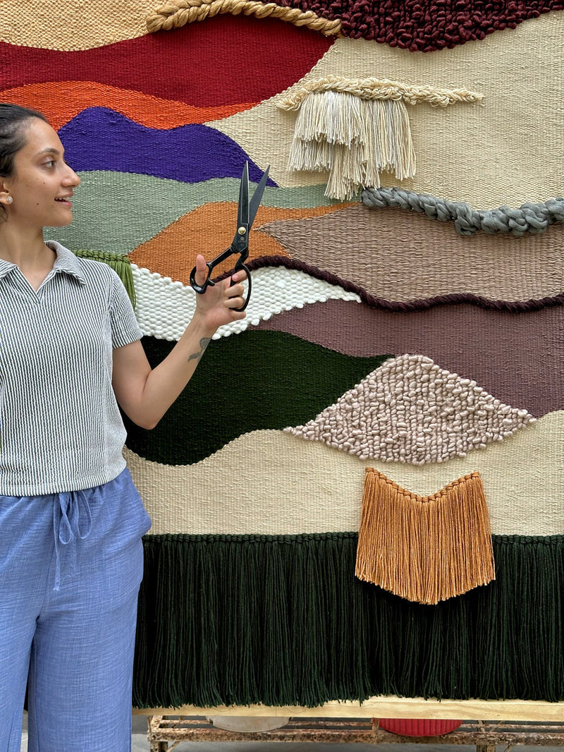 Prachi Oswal, the artist and owner behind Tapestried, finds pure joy in hands-on creativity. She's deeply drawn to the tactile nature of her work, constantly exploring the play between colour & texture. Whether she's weaving, tufting or doing punch needle, her passion lies in transforming dreamy and abstract into tangible, modern decor. For her, its not just about making art, but about turning spaces into timeless beauty one tuft, knot and loop at a time.