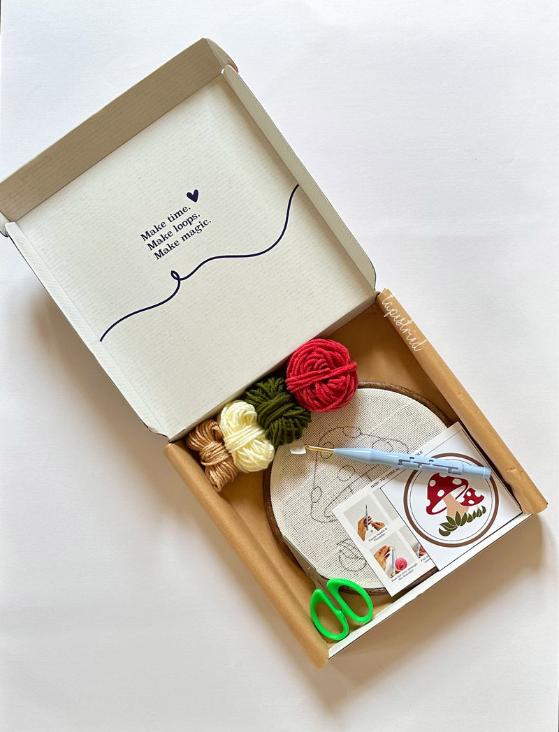 Prachi Oswal, the artist and owner behind Tapestried, finds pure joy in hands-on creativity. She's deeply drawn to the tactile nature of her work, constantly exploring the play between colour & texture. Whether she's weaving, tufting or doing punch needle, her passion lies in transforming dreamy and abstract into tangible, modern decor. For her, its not just about making art, but about turning spaces into timeless beauty one tuft, knot and loop at a time.