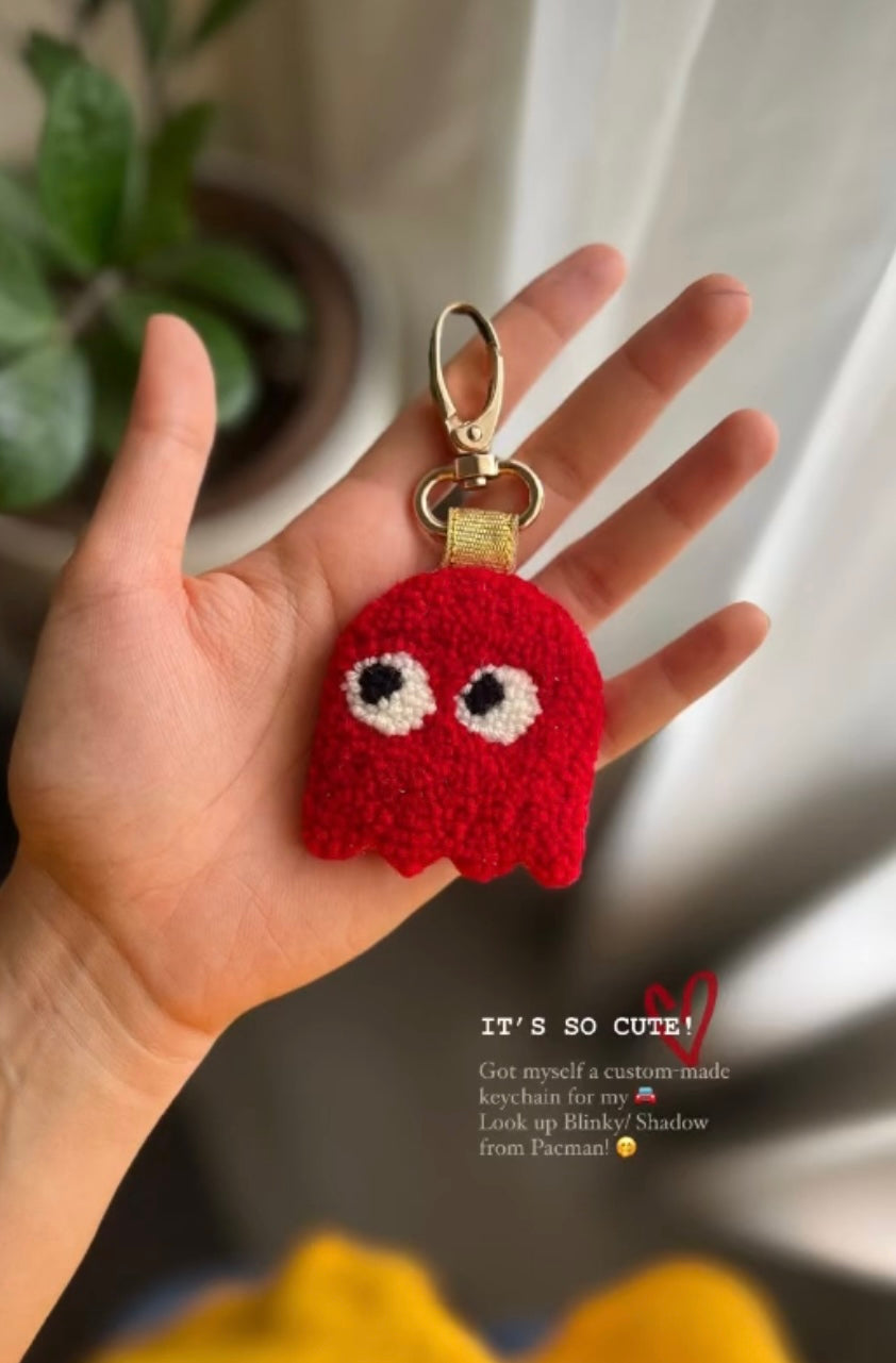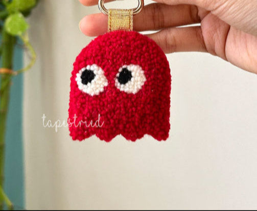 This handmade punch needle Pac-Man ghost keychain is a nostalgic nod to your favourite retro game, reimagined in the cutest form! Soft, textured, and full of character, it’s the perfect quirky companion for your keys, bags, or even as a playful charm for gifting. Bring a pop of red and a whole lot of fun wherever you go!