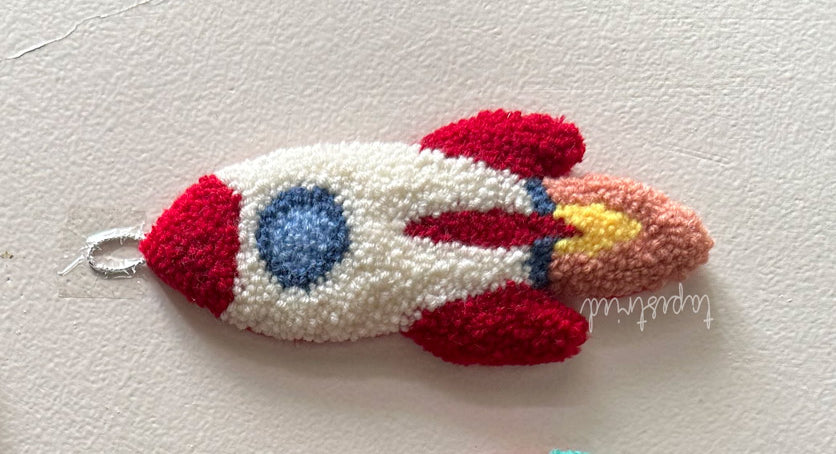 Handcrafted with punch needle technique, this rocket charm is perfect for your little explorer’s room or space-themed name buntings! It’s a great gift, can be turned into a magnet, or clipped to a backpack for a fun outer space vibe.